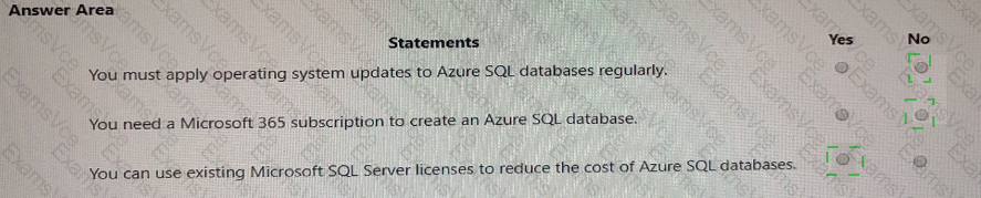 Select the answer that correctly completes the sentence.For each of the following statements, select Yes if the statement is true. Otherwise, select No. NOTE: Each correct selection is worth one point.