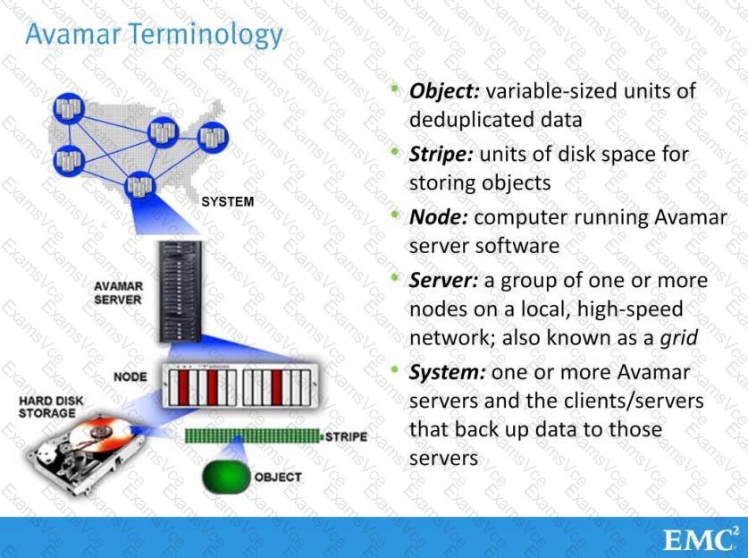 In EMC Avamar, what is a variable-size unit of deduplicated data?