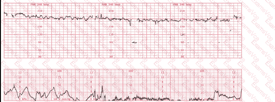 A 30-year-old woman (G2P0) is experiencing preterm labor at 26-weeks gestation. She is receiving magnesium sulfate for neuroprotection. Her external fetal monitoring tracing over the past 30 minutes is shown. The next step would be to: