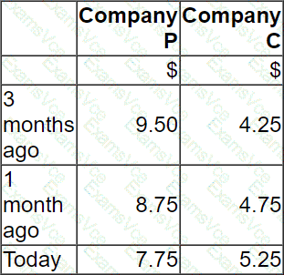 Company P is approximately twice the size of Company C based on market capitalisation.