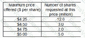 Company C invests heavily in Research and Development an need to raise $45 million to finance future projects. It has decided to use equity finance raised by a tender offer, The following tender offers have been received from potential investors: