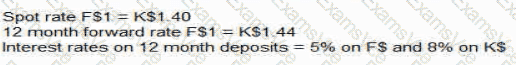 Borrow F$, convert to K$, invest at 9%, and lock in selling K$ forward at 1.44.