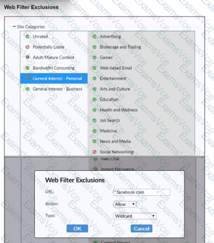 Based on the settings shown in the exhibit, which action will FortiClient take when users try to access www facebook com?