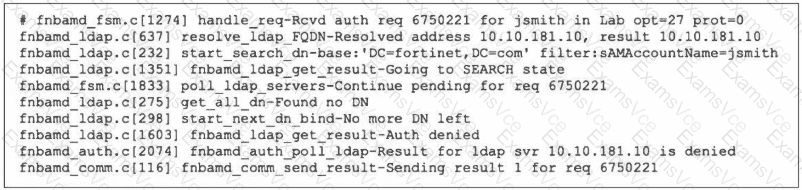 Refer to the exhibit, which shows a partial output of the real-time LDAP debug.