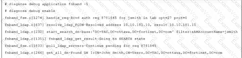 Refer to the exhibit, which shows a partial output of a real-time LDAP debug.