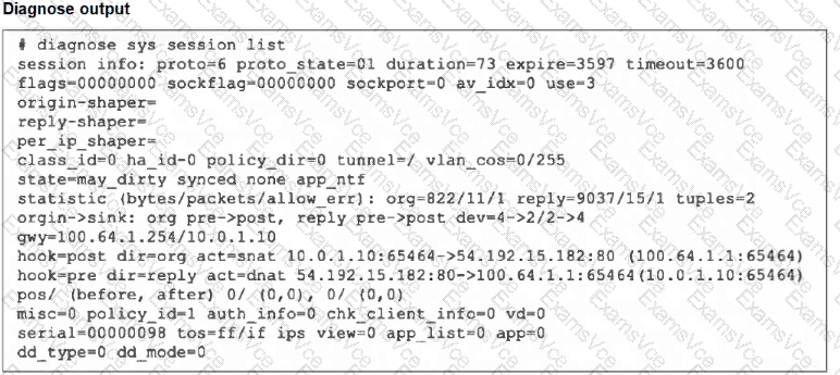 Refer to the exhibit, which shows the output of diagnose sys session list.