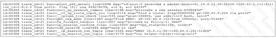 C is wrong because if FTP had not been mapped to port 211, FortiGate would be less likely to treat this traffic as FTP. The observed run helper-ftp indicates FTP handling is being triggered.