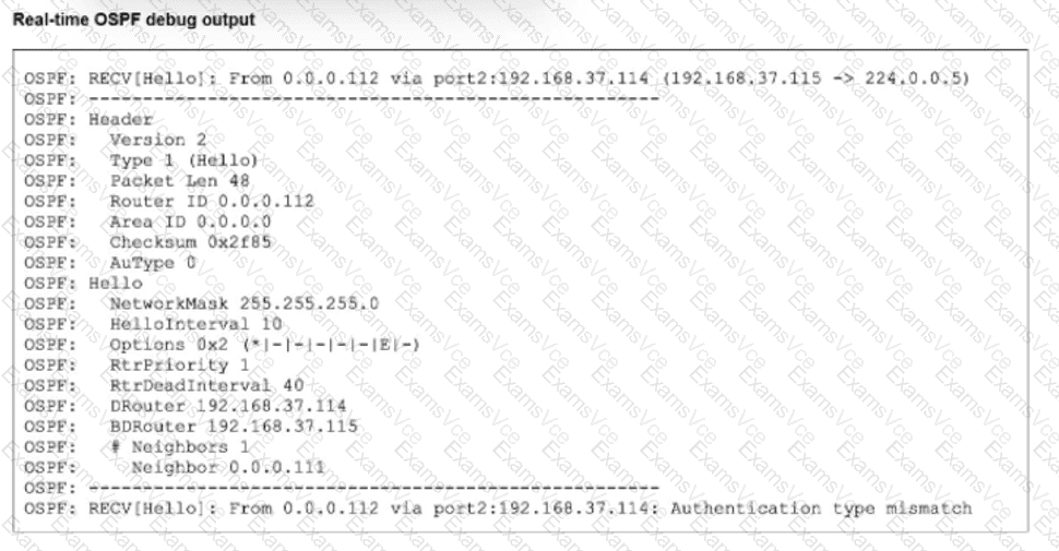 Partial output of a real-time OSPF debug is shown.