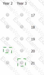 Select a number for Year 2and a number for Year 3that could be the total numbers of properties Elena sold in Year 2 and in Year 3, respectively, so that the selections are Jointly consistent with the information provided. Make only two selections, one In each column.