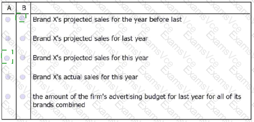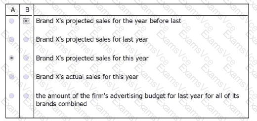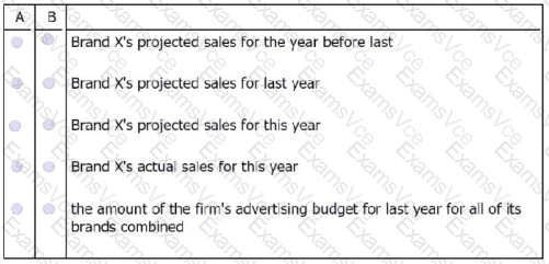 Statement B: Given the knowledge of this year's advertising budget for Brand X, if the reporter also knew Brand X's actual sales for the year before last, she could also