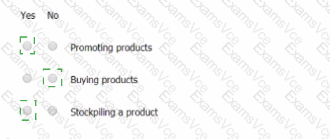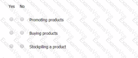 For each of the following actions, select Yes if it is mentioned in at least two of the tabs. Otherwise, select No.