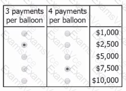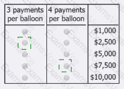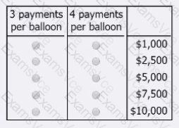 Select for 3 payments per balloon the amount of the prize money that the winning team would have remaining if they had to pay 3 people for each balloon located, and select for 4 payments per balloon the amount of the prize money that the winning team would have remaining if they had to pay 4 people for each balloon located. Make only two selections, one in each column.
