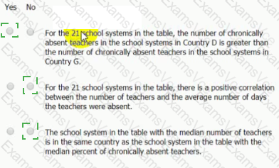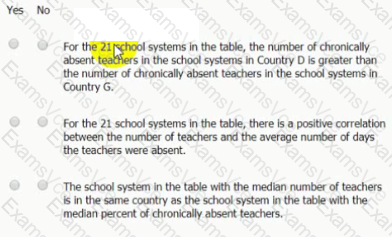 For each of the following statements, select Yes if, based on the information provided, it can be inferred that the statement is true. Otherwise, select NO.