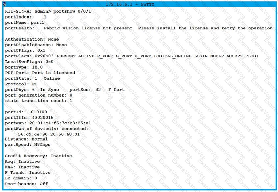 The information shown is displayed for a Nimble array you are installing. The customer’s administrator has asked you for the speed at which the Nimble ports are connecting to their SAN switches, and you have run the command shown to determine the number of gigabits per second used by this port connection.