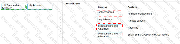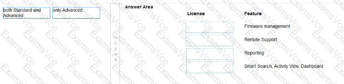 For each feature. indicate whether it is available with both hpe oneview Standard and hpe oneview Advanced licenses, or only with an hpe oneview Advanced license.