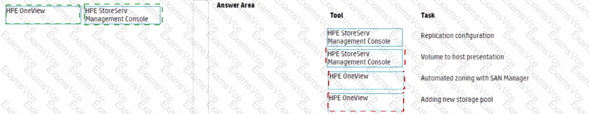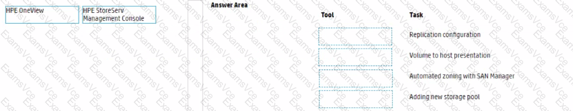 For HPE Primera, match each task with the management tool that can be used to perform it.