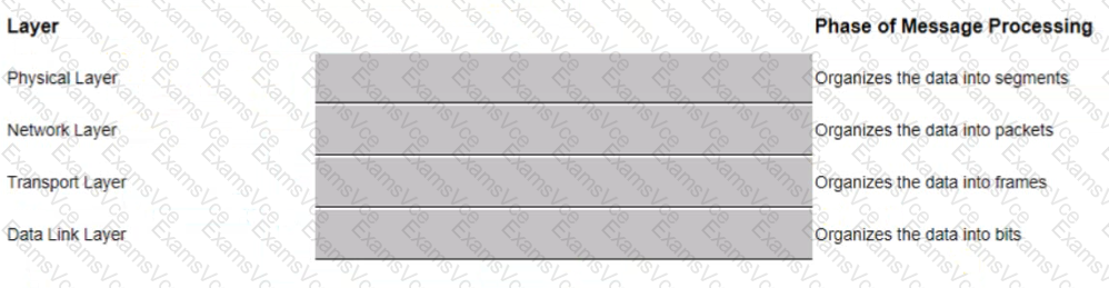 Match the phase of message processing with the Open Systems interconnection (OSl) layer.