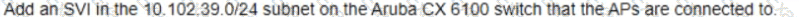 You are troubleshooting an issue with a 10 102.39 0/24 subnet which is also VLAN 1000 used Tor wireless clients on a pair of Aruba CX 8360 switches The subnet SVI is configured on the 8360 pair, and the DHCP server is a Microsoft Windows Server 2022 Standard with an IP address of 10 200 1.100. The 10.102.250.0/24 subnet is used for switch management.