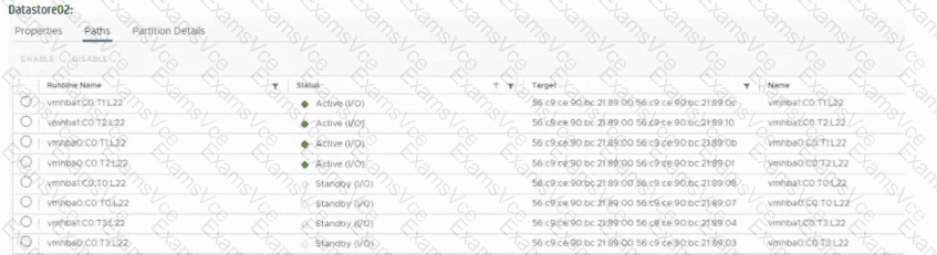 You are analyzing a customer environment with two Alletra 6000 arrays in a VMware stretched cluster. Application latency differs slightly depending on whether the VM is on Datastore01 or Datastore02.