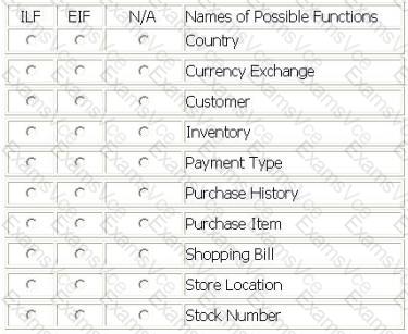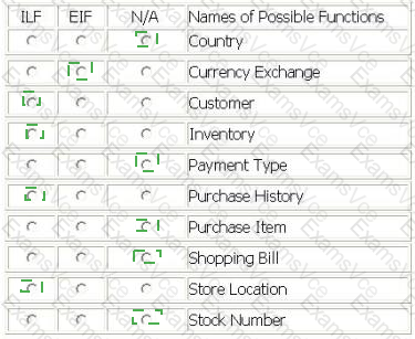 From the Names of Possible Functions listed identify the data functions for the IA. Select N/A if a Name of Possible Function does not apply.