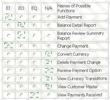 From the Names of Possible Functions listed identify the transactional functions for the Accounts Receivable application. Select N/A if a Name of Possible Function does not apply.