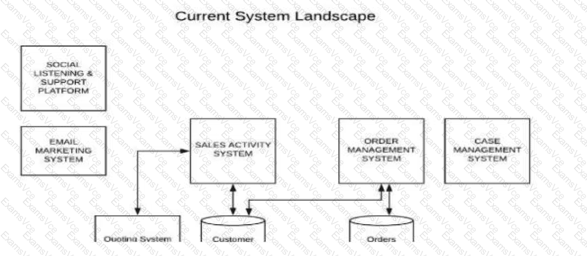 Therefore, because Email Marketing, Sales Activity, and Case Management map directly to Salesforce’s primary strengths and are not excluded by the "reuse" requirement, they are the three systems that should be retired. This strategic retirement simplifies the integration architecture, allowing the architect to focus on building robust integration patterns (such as Request-Reply or Fire-and-Forget) between Salesforce and the remaining Quoting and Order Management systems.