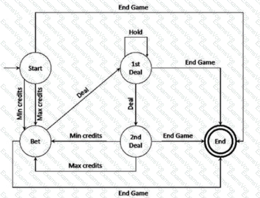 Consider the following simplified version of a state transition diagram that specifies the behavior of a video poker game: