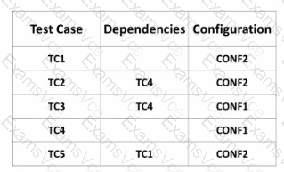 Assume that C0NF1 is the initial configuration of the test environment Based on this assumption, which of the following is a test execution schedule that is compatible with the specified dependencies and allows minimising the number of switches between the different configurations of the test environment^