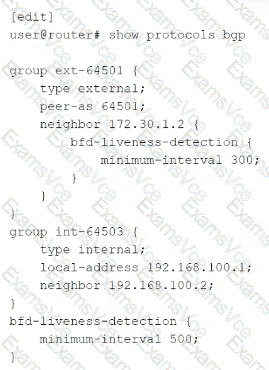 Which statement concerning Bidirectional Forwarding Detection (BFD) is true for the configuration shown in the exhibit?