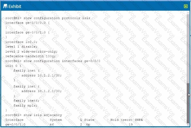 You configured interface ge-0/070.0 to run IS-IS. but this interface does not appear in the output of the show isis adjacency command as shown in the exhibit.
