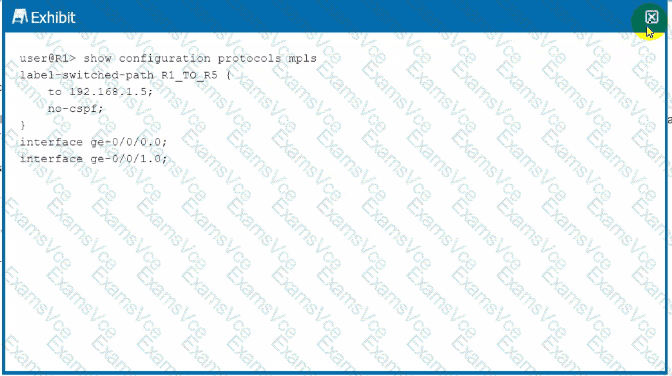 You have an established LSP between your R1 and R5 devices using the configuration shown in the exhibit. You are asked to ensure that MPLS labels are used to forward traffic by all devices within the LSP.