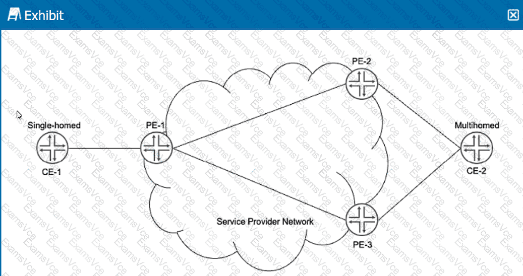In the context of Ethernet VPN (EVPN) and the behavior described in the exhibit, it's essential to understand the different EVPN route types and their specific functionalities. Here, CE-2 is receiving unicast traffic on both of its multihomed links to PE-2 and PE-3, but broadcast traffic is received only on one of these links.