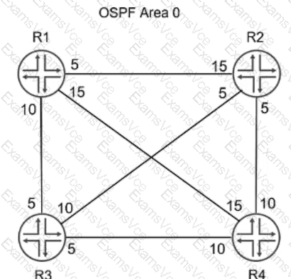 Referring to the exhibit, which path would traffic passing through R1 take to get to R4?