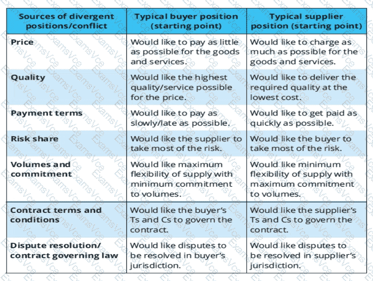 Which of the following are most likely to be sources of conflict that can emerge from the content of commercial negotiations? Select TWO that apply.