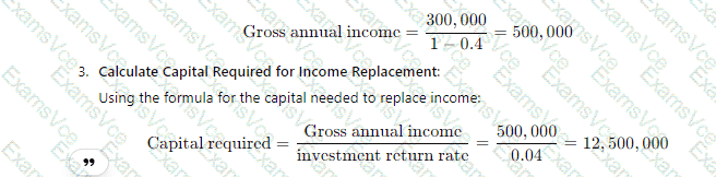 Jasper is the sole breadwinner in his family. His wife Stephanie has chosen to dedicate all of her time to raising their 3 young children. Luckily, Jasper earns a monthly after-tax income of $25,000 working as a family doctor in the local clinic. Jasper meets with his insurance agent Odda to purchase a life insurance policy that will ensure his family will be able to continue to enjoy their current lifestyle in the event of his death. If his average tax rate is 40% and the investment return is 4%, how much life insurance should Jasper purchase based on the income replacement approach?