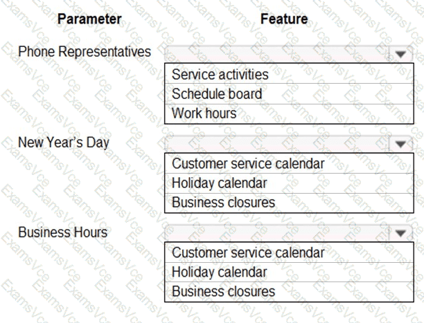 Which feature should you use for each parameter? To answer, select the appropriate options in the answer area.