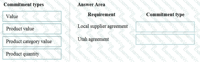 Which commitment types should you use? To answer, drag the appropriate commitment types to the correct requirements. Each commitment type may be used once, more than once, or not at all. You may need to drag the split bar between panes or scroll to view content.