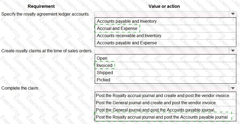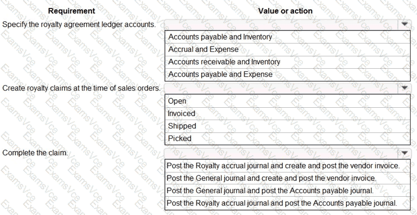How should you set up the royalty agreement? To answer, select the appropriate options in the answer area.