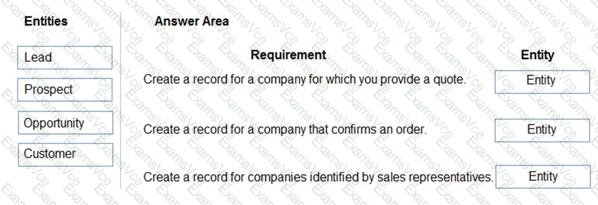 How should you configure the system? To answer, drag the appropriate entities to the correct requirements. Each entity may be used once, more than once, or not at all. You may need to drag the split bar between panes or scroll to view content.