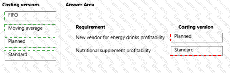 Which costing versions should you use? To answer, drag the appropriate costing versions to the correct requirements. Each costing version may be used once, more than once, or not at all. You may need to drag the split bar between panes or scroll to view content.