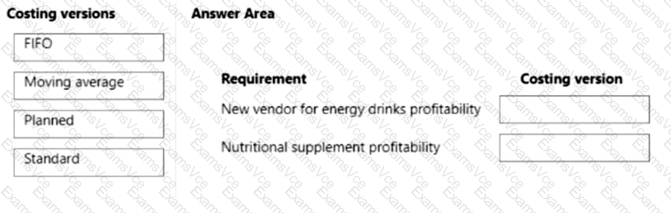 Which costing versions should you use? To answer, drag the appropriate costing versions to the correct requirements. Each costing version may be used once, more than once, or not at all. You may need to drag the split bar between panes or scroll to view content.