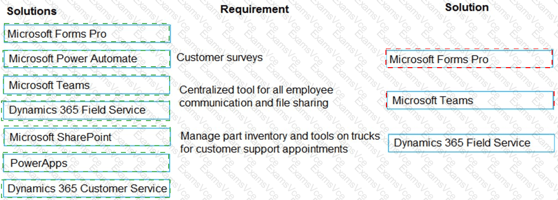 What should you recommend? To answer, drag the appropriate solutions to the correct requirements. Each solution may be used once, more than once, or not at all. You may need to drag the split bar between panes or scroll to view content.