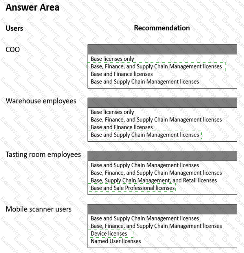 You need to recommend which type of Dynamics 365 licenses are needed.