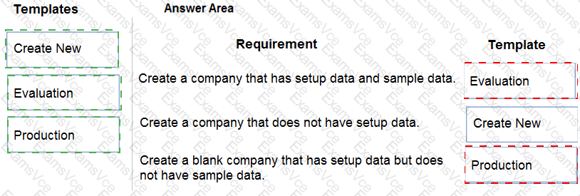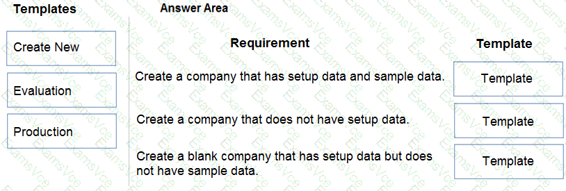 Which templates should you use? To answer, drag the appropriate templates to the correct requirements. Each template may be used once, more than once, or not at all. You may need to drag the split bar between panes or scroll to view content.