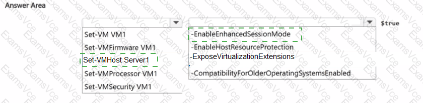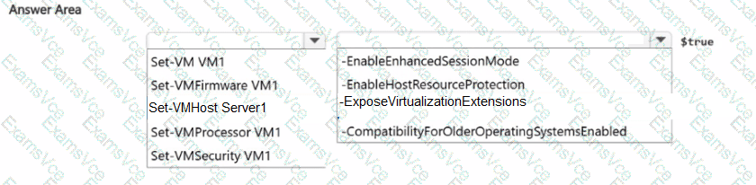 You have a server named Server! that runs Windows Server and has the Hyper-V server role installed. Server1 contains a virtual machine named VM1 that runs Windows Server.