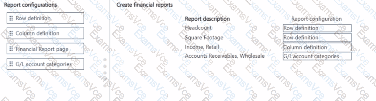 Which report configuration should you use to add the report descriptions lo financial reports? To answer, move the appropriate report configurations to the correct report descriptions. You may use each report configuration once, more than once, of not at all. You may need to move the split bar between panes or scroll to view content