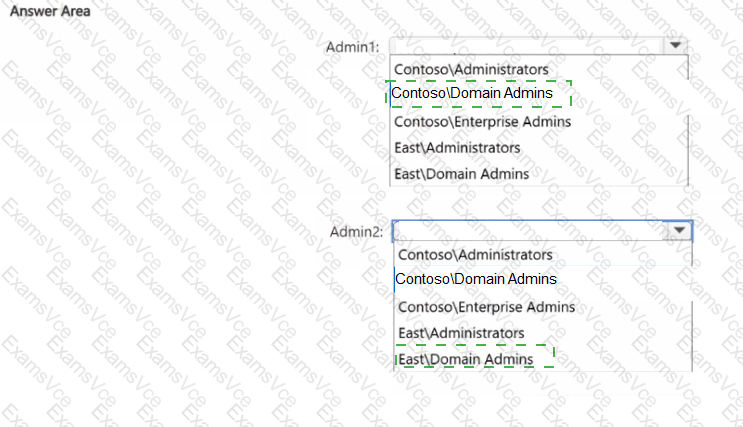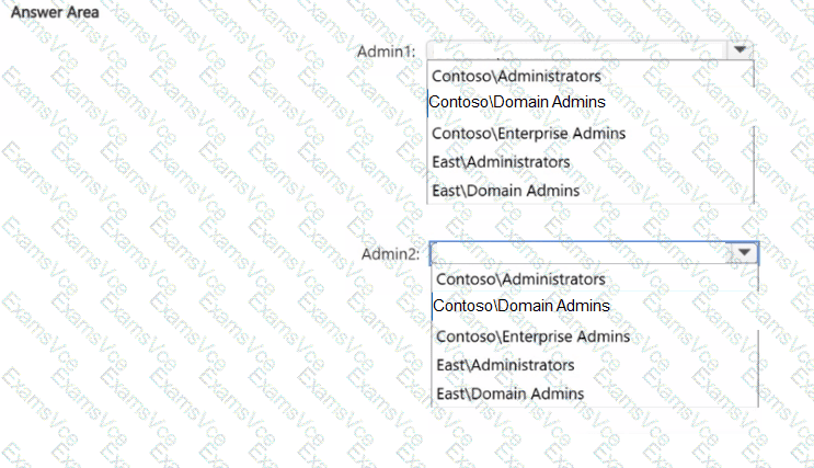 In the contoso.com domain, you create two users named Admin1 and Admin2.