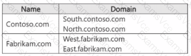 Your network contains two Active Directory Domain Services (AD DS) forests as shown in the following table.