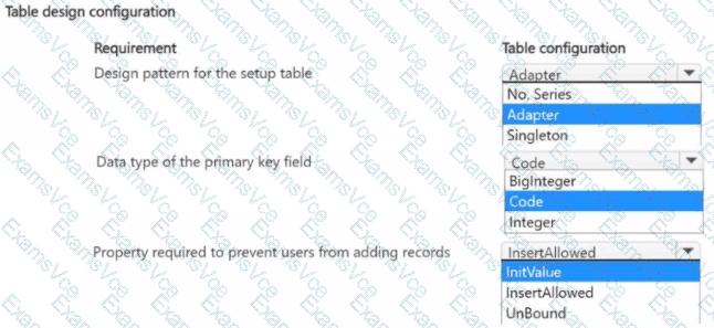 Which table configurations should you use? To answer, select the appropriate options in the answer area.