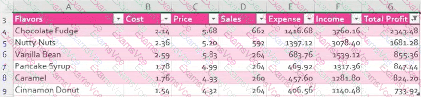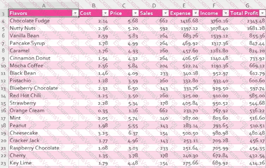 Filter the Profits worksheet to display only flavors with Total Profit that are Above Average.